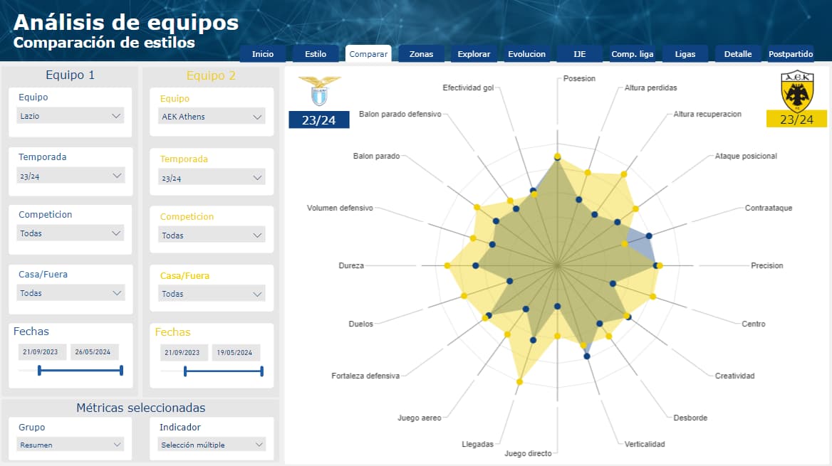Generamos estadísticas avanzadas a partir de métricas en bruto consensuando contigo la metodología, el enfoque y la configuración. Por ejemplo, si estás interesado en analizar la competitividad de tu equipo en “segundas jugadas”, analizamos conjuntamente qué métricas pueden ayudarnos a conseguir este indicador, y si no existen intentaremos generarlas con información de detalle proveniente por ejemplo del tracking de los partidos. Podríamos, por ejemplo, generar una configuración incluyendo una ponderación según la importancia de la jugada.